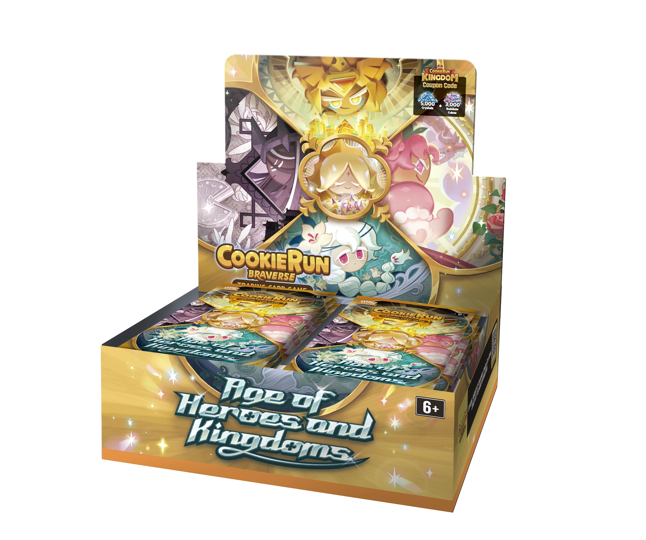 1 in-game currency coupon for CookieRun: Kingdom, 1 Promo Pack Vol. 3 + Vol. 4 (2 cards), 1 Cookie Promo Pack (1 card)